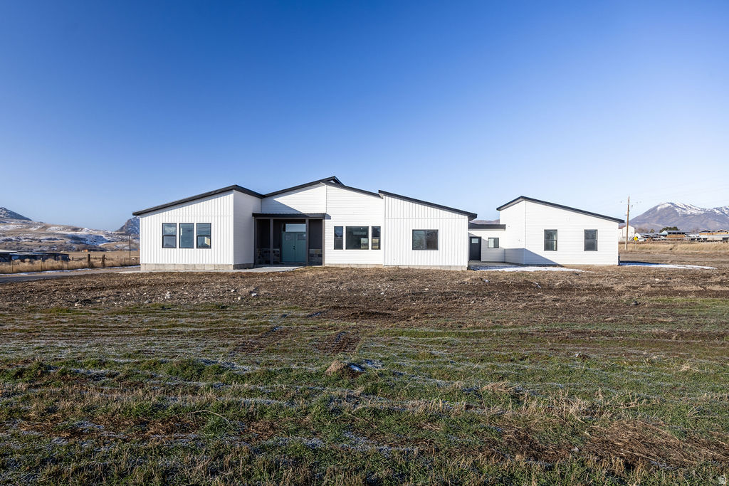 Make this home your home AND investment with an attached ADU! Enjoy wide open spaces and beautiful mountain views. This custom home has it all! The covered porch welcomes you into a vaulted great room with multiple hand crafted walnut built-ins and a gas fireplace. Open design chef's kitchen features a large granite bar with farmhouse sink, kitchenaid appliances, a pot filler and spacious walk in pantry. Adjoining dining room has large windows for natural light and great views. A hall bathroom is shared by 2 bedrooms with generous closet space. On the other side of the house, the Master suite is stunning! Plenty of room for a King sized bedroom set and a full size sofa or club chairs for lounging in your private retreat with electric fireplace (gas installed for future option). En suite bathroom has separate shower and oversized soaker tub, his/hers vanities with ample storage, and a stacked washer dryer! Double walk-in closets are just off the bathroom. The attached garage has gas heater and is wired for an electric vehicle. Mudroom entry off the garage has dropzone built-ins for coats, bags, etc. The main laundry room is nestled in the back of the home with a window overlooking the covered patio (wired for future hot tub). Long hallway from breakfast nook/flex space boasts a built-in office and leads to a courtyard in the front of the home, and an accessory unit for guests, family or rental income. The ADU has its own kitchen, laundry hook ups, ductless heat/AC and a separate entrance.